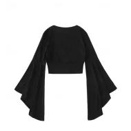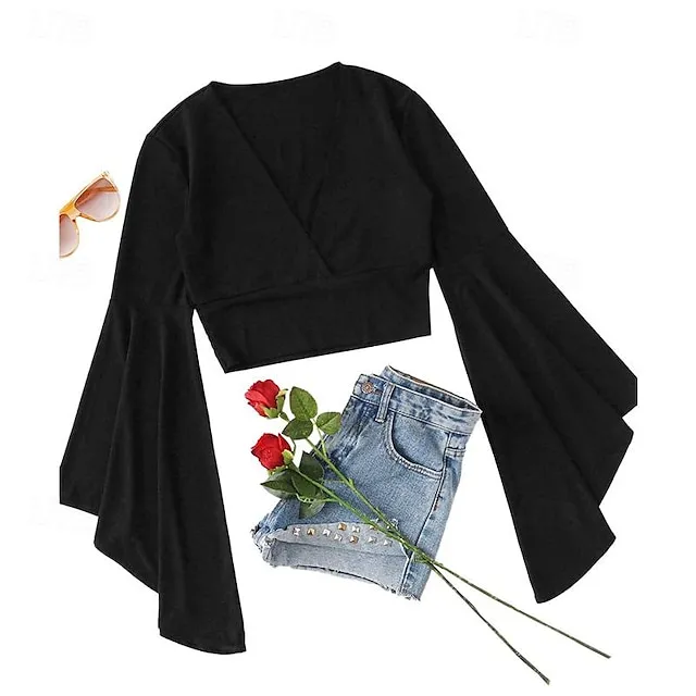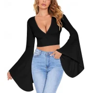 Crop Women’s Black Plain Cropped Street Daily Fashion V Neck Regular Fit S