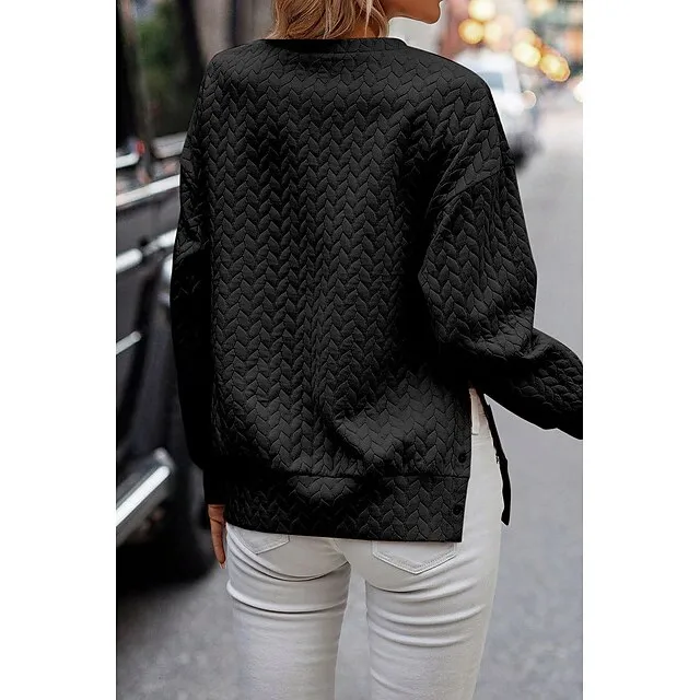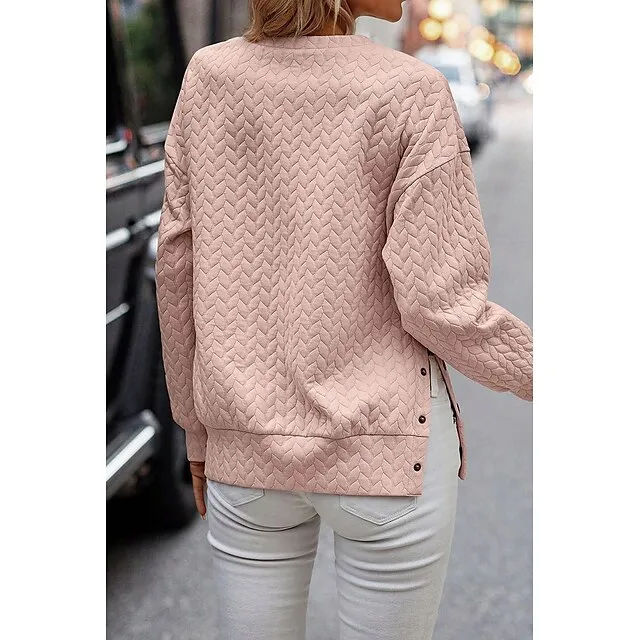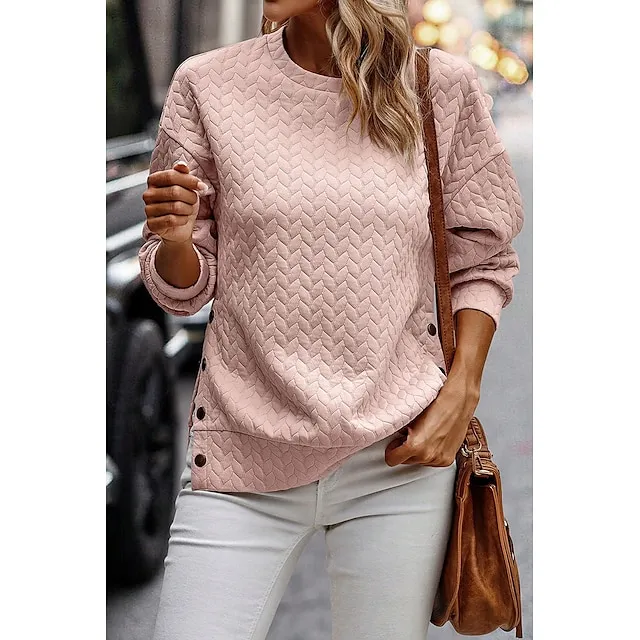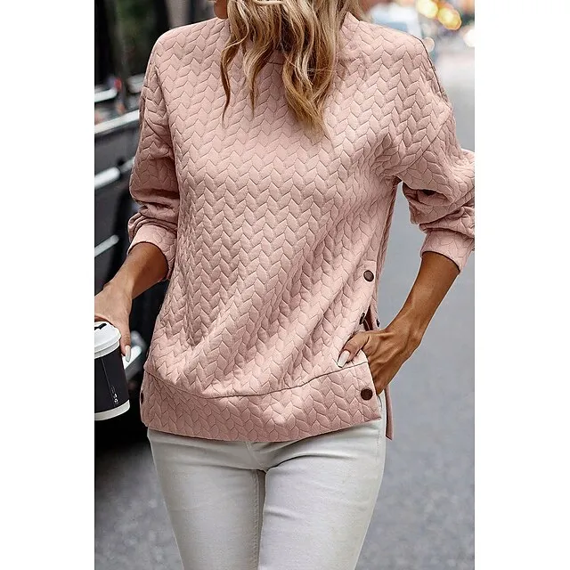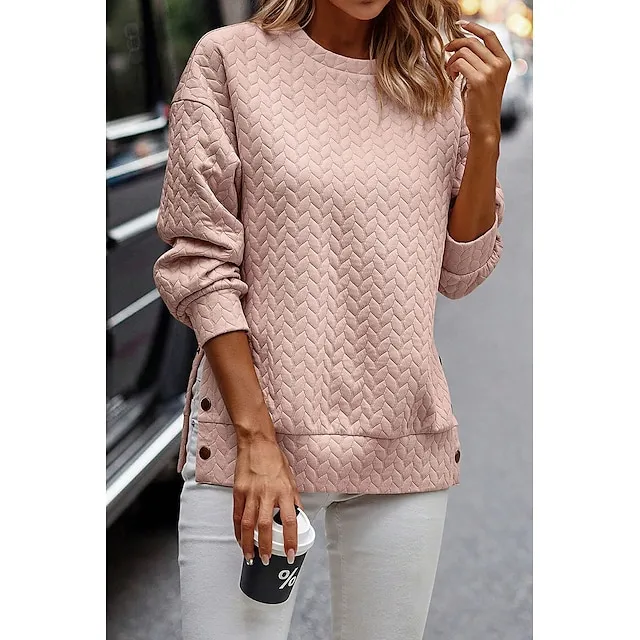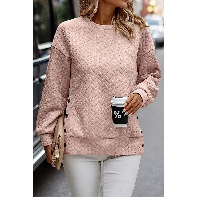 Hoodie Women’s Black Pink Solid Color Button Sports & Outdoor Daily Active Sports Round Neck Textured Regular Fit S