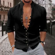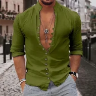 Men’s Linen Shirt Shirt Button Up Shirt Casual Shirt Summer Shirt Beach Shirt Black White Pink Long Sleeve Plain Stand Collar Spring & Summer Casual Daily Clothing Apparel