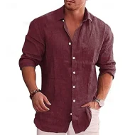 Men’s Linen Shirt Shirt Button Up Shirt Summer Shirt Beach Shirt Black White Wine Long Sleeve Plain Lapel Spring & Fall Hawaiian Holiday Clothing Apparel