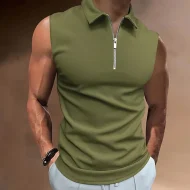 Men’s Polo Shirt Golf Shirt Casual Holiday Lapel Quarter Zip Sleeveless Fashion Basic Plain Quarter Zip Summer Regular Fit Black White Red Dark Navy Blue Sky Blue Polo Shirt