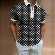 Men’s Polo Shirt Golf Shirt Outdoor Street Collar Short Sleeve Fashion Casual Polka Dot Zipper Spring & Summer Regular Fit Black White Navy Blue Polo Shirt