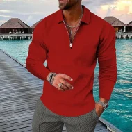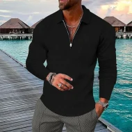 Men’s Polo Shirt Golf Shirt Outdoor Street Turndown Long Sleeve Fashion Designer Plaid Zipper Print Spring & Fall Regular Fit Black Army Green Red Royal Blue Blue Green Polo Shirt