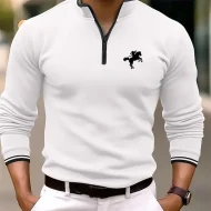 Men’s Polo Shirt Quarter Zip Polo Work Daily Wear Quarter Zip Long Sleeve Fashion Comfortable Plain Embroidery Zip Up Spring & Fall Regular Fit Black White Navy Blue Orange Polo Shirt