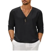 Men’s Shirt Linen Shirt Summer Shirt Beach Shirt White Blue Brown Long Sleeve Plain Crew Neck Spring & Summer Casual Daily Clothing Apparel