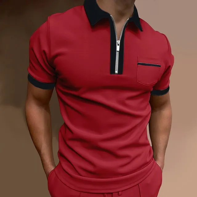 Men’s Zip Polo Polo Shirt Gym golf shirts Turndown Quarter Zip Short Sleeve Sports Designer Solid Colored Patchwork Quarter Zip Spring & Summer Slim Wine Black / Red Black-White Black / Gray White