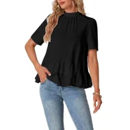 Shirt Blouse Women’s Black White Red Solid Color Ruffle Street Daily Fashion Round Neck S