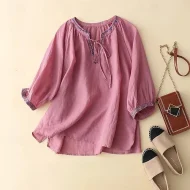 Shirt Blouse Women’s White Light Green Pink Plain Embroidered Street Daily Fashion V Neck Regular Fit M