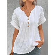 Shirt Blouse Women’s White Plain Button Street Daily Fashion V Neck Regular Fit S