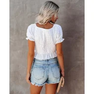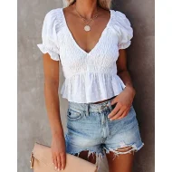Shirt Blouse Women’s White Solid Color Ruched Street Daily Fashion V Neck S