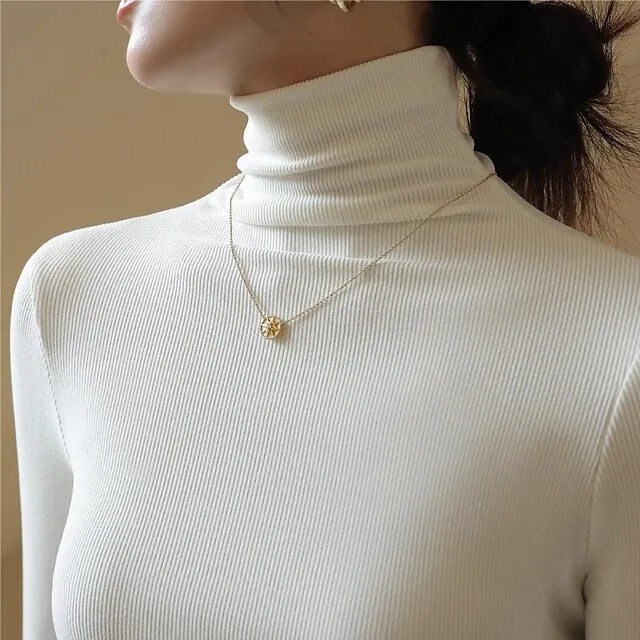 Shirt Women’s Black White Blue Solid / Plain Color Sexy Daily Fashion High Neck Regular Fit M