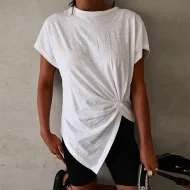 T shirt Tee Women’s Black White Wine Plain Ruched Asymetric Hem Street Daily Fashion Round Neck Regular Fit S