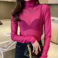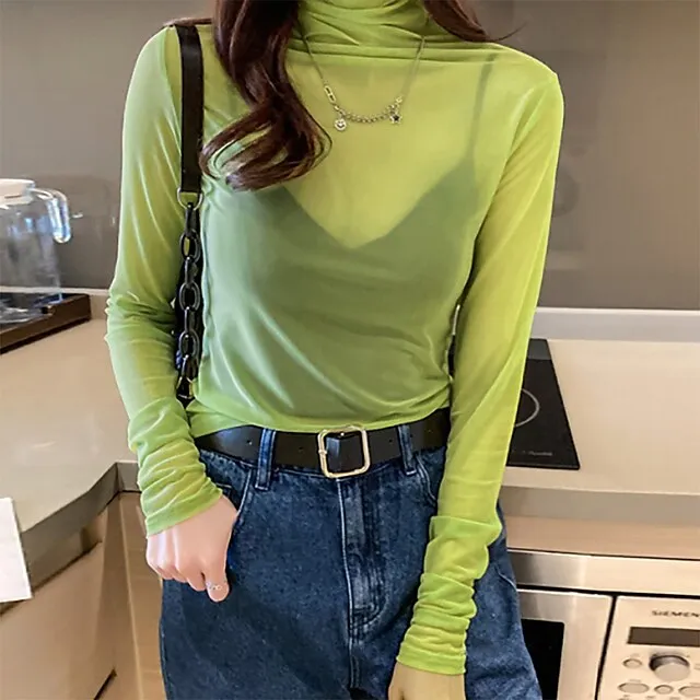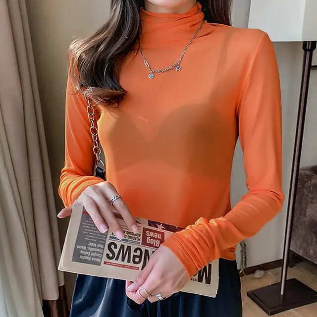 T shirt Tee Women’s Orange Green Rose Pink Plain Casual Daily Modern High Neck Regular Fit M