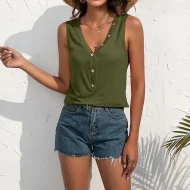 Tank Women’s Army Green Orange Brown Solid Color Button Street Daily Fashion V Neck S