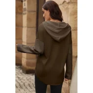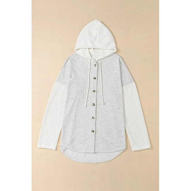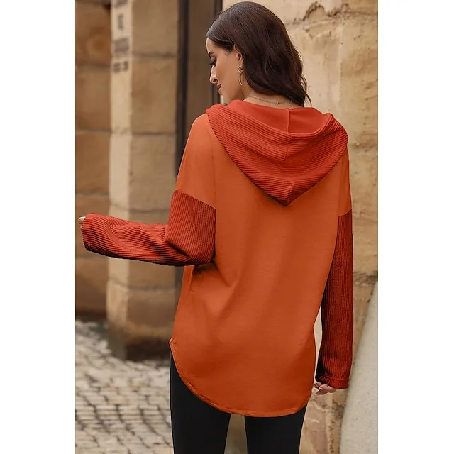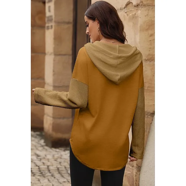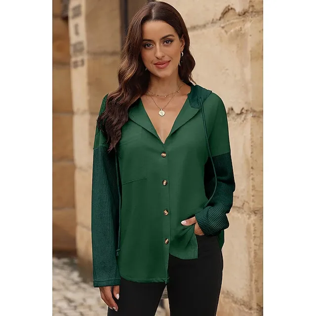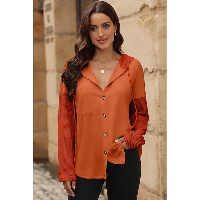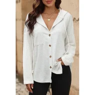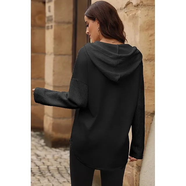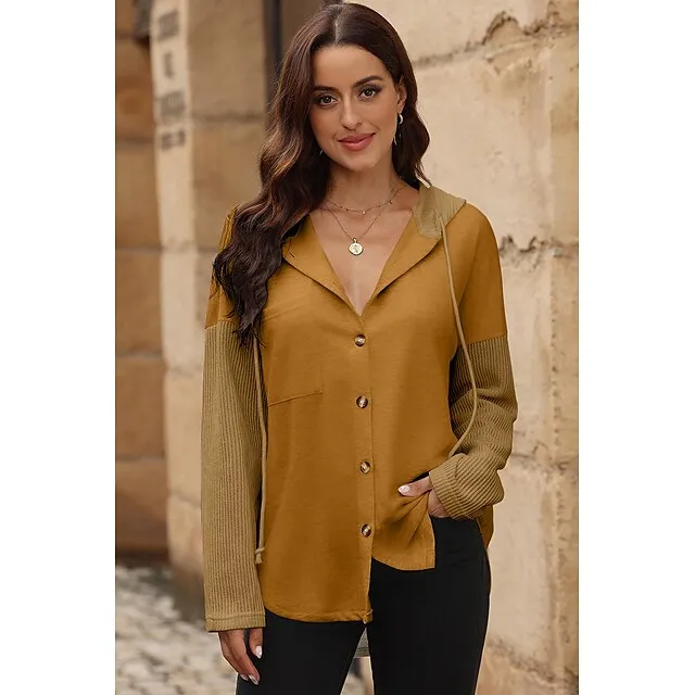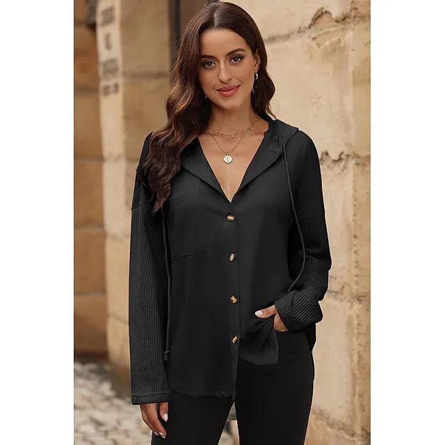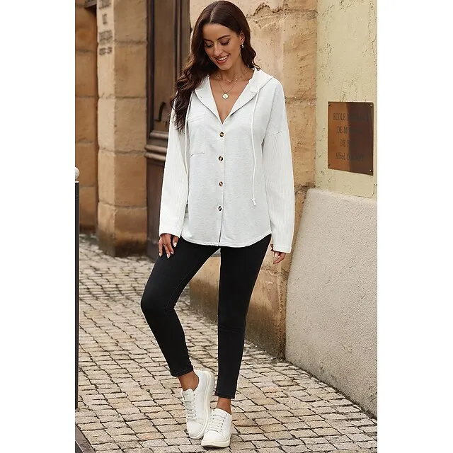Women’s Black White Yellow Plain Button Pocket Drawstring Street Casual Active Fashion Hooded Regular Fit S
