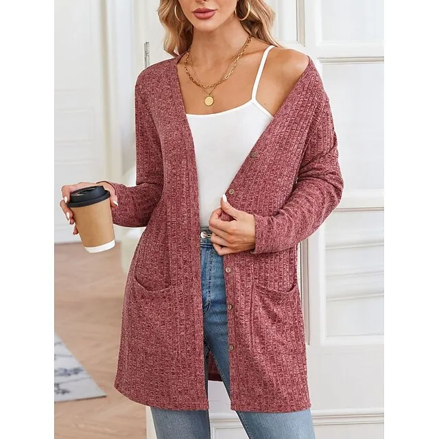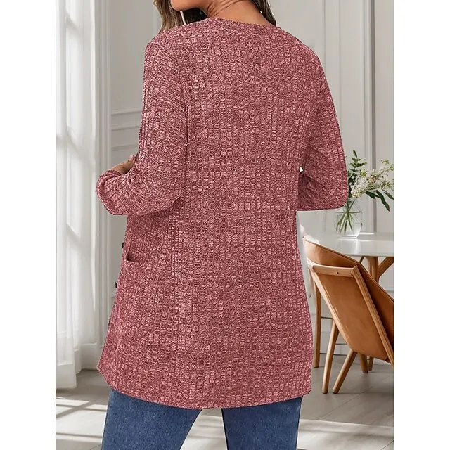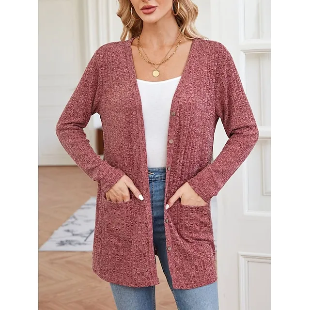 Women’s Blouse Shrugs Plain Casual Black Red Button Pocket Long Sleeve Fashion V Neck Regular Fit Spring & Fall