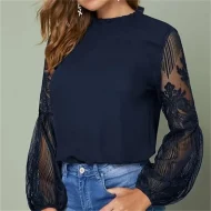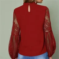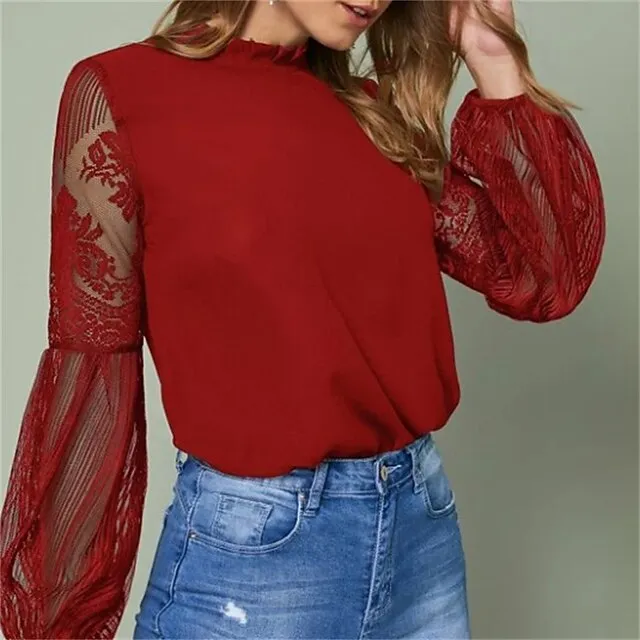 Women’s Blouse Solid / Plain Color Party Daily Going out Lantern Sleeve Black Wine Dark Blue Embroidery Classic Lace Sweet Regular Fit Spring & Fall Fall & Winter