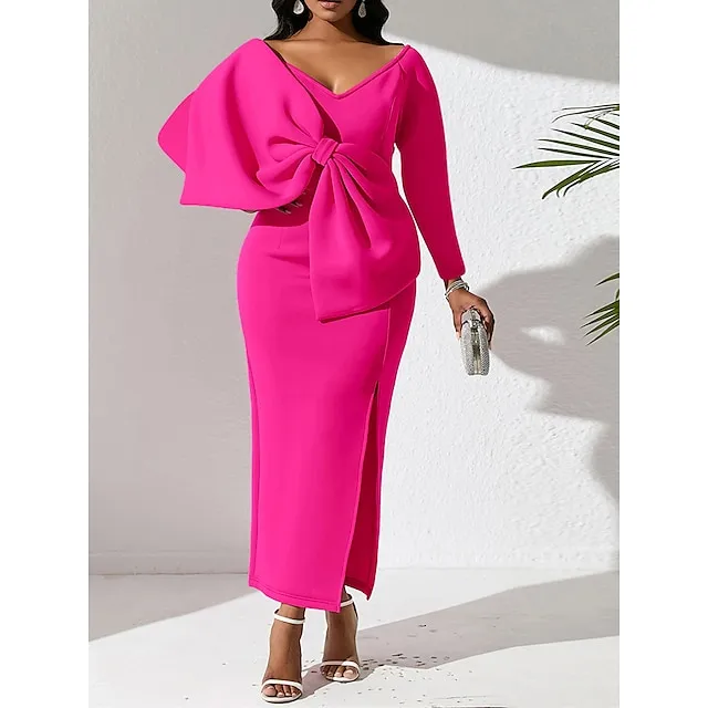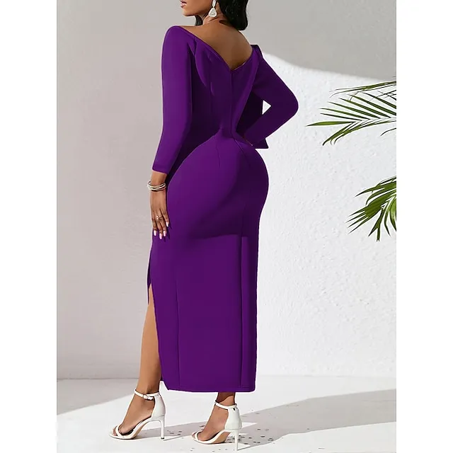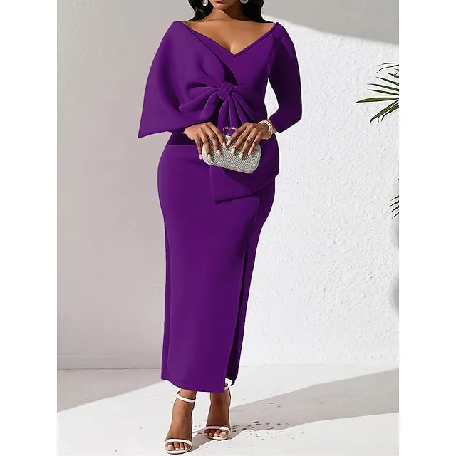 Women’s Party Dress Cocktail Dress Wedding Guest Dress Long Dress Maxi Dress White Purple Rose Long Sleeve Plain Split Summer Spring Fall V Neck Party Winter Dress Wedding Guest Vacation S M L XL XXL