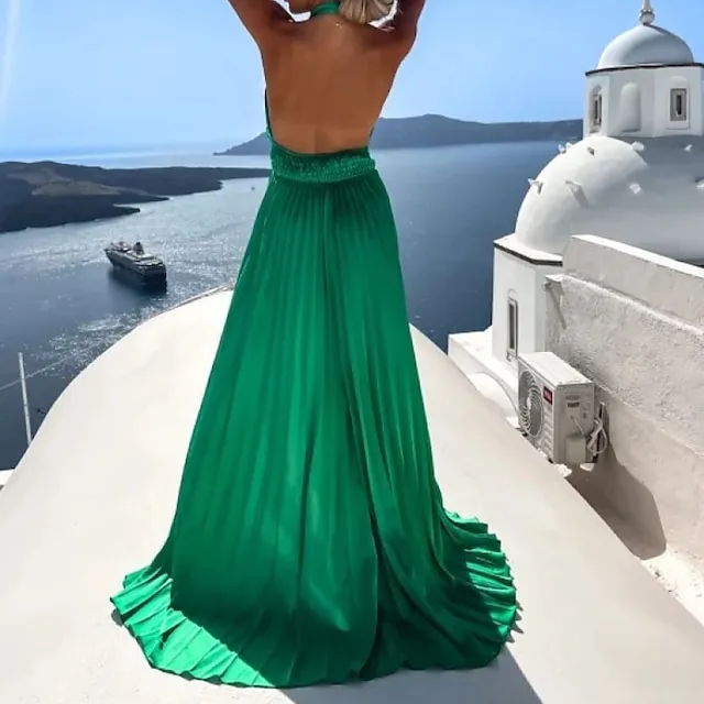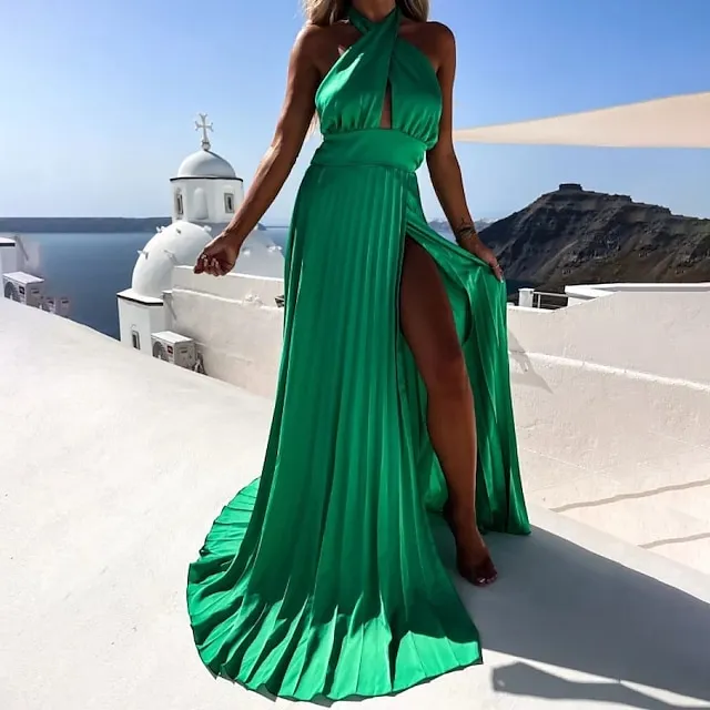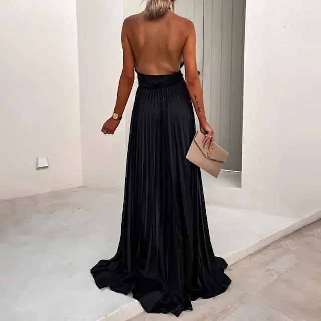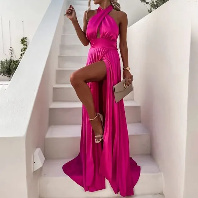 Women‘s Prom Party Dress Long Dress Maxi Dress Black Blue Fuchsia Sleeveless Pure Color Split Spring Summer Halter Party Party Slim S M L XL XXL