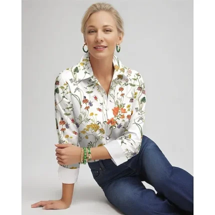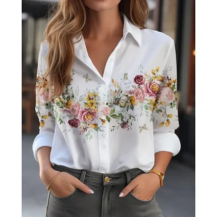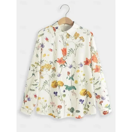Women’s Shirt Blouse Floral Casual Holiday Black Print Button Long Sleeve Fashion Square Neck Regular Fit Spring & Fall