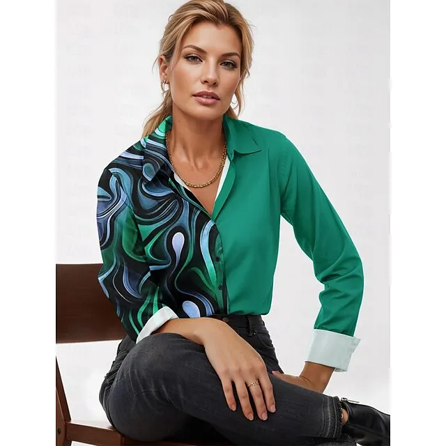 Women’s Shirt Blouse Graphic Casual Black Red Green Button Print Long Sleeve Fashion Shirt Collar Regular Fit Spring & Fall