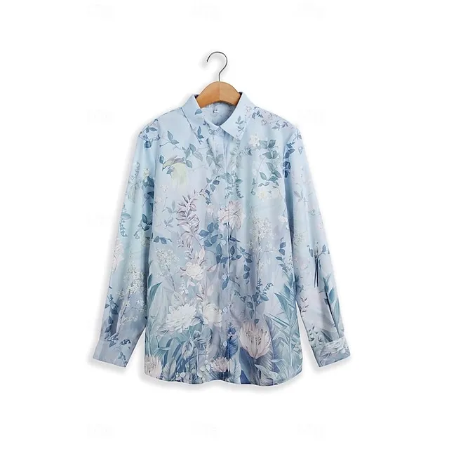 Women’s Shirt Blouse Maroon Black Pink Graphic Floral Button Print Long Sleeve Casual Streetwear Vintage Shirt Collar Regular S