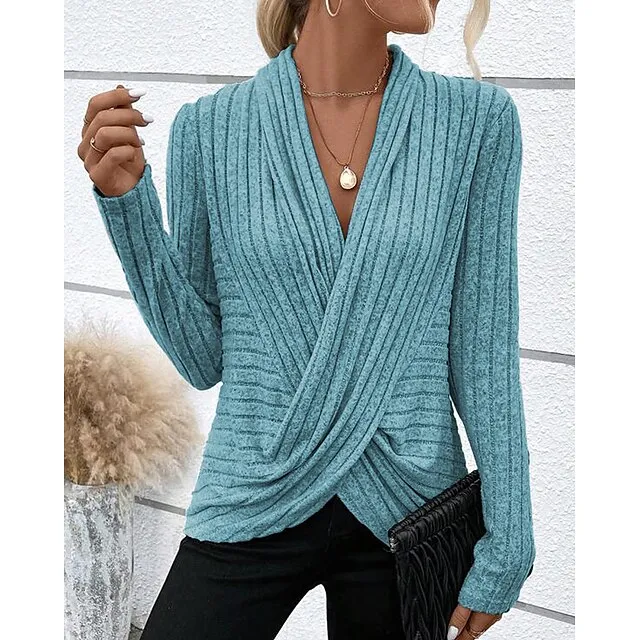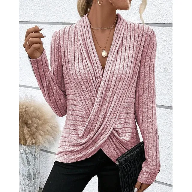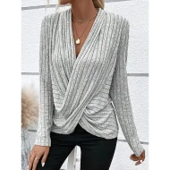 – Elevate your wardrobe with this stunning V neck long sleeve top for women.
