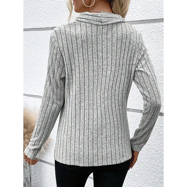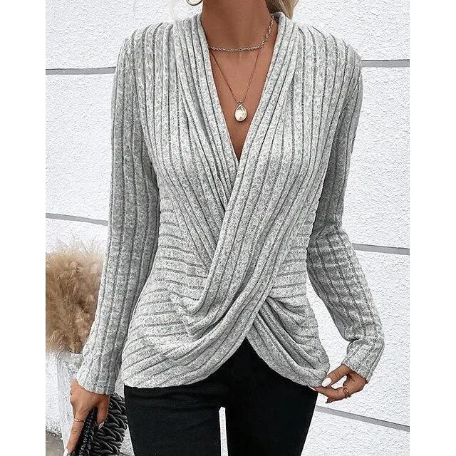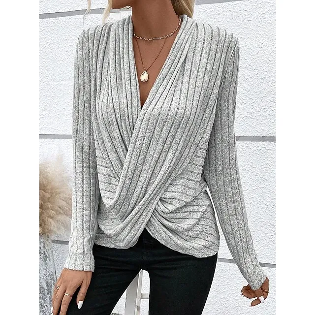 Women’s Shirt Blouse Plain Work Gray Long Sleeve Fashion V Neck Regular Fit Fall & Winter