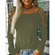 Women’s Shirt Burgundy Tee Blouse Black Wine Blue Cut Out Long Sleeve Sexy Casual Round Neck Regular Fit Fall & Winter