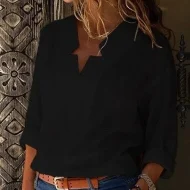 Women’s Shirt Going Out Tops Blouse Concert Tops Cotton Plain Work Daily Weekend Black White Pink Long Sleeve Streetwear Basic V Neck Regular Fit Spring Fall