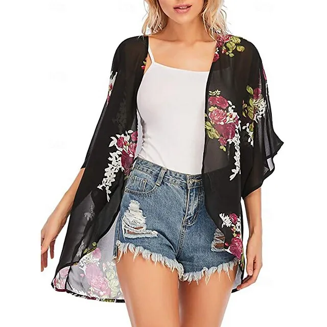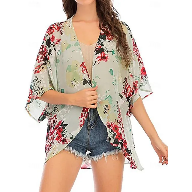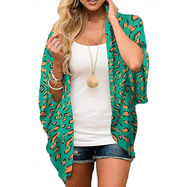 Women’s Shirt Shrugs Floral Leopard Casual Holiday Black Light Green Pink Print Long Sleeve Fashion V Neck Regular Fit Spring & Summer
