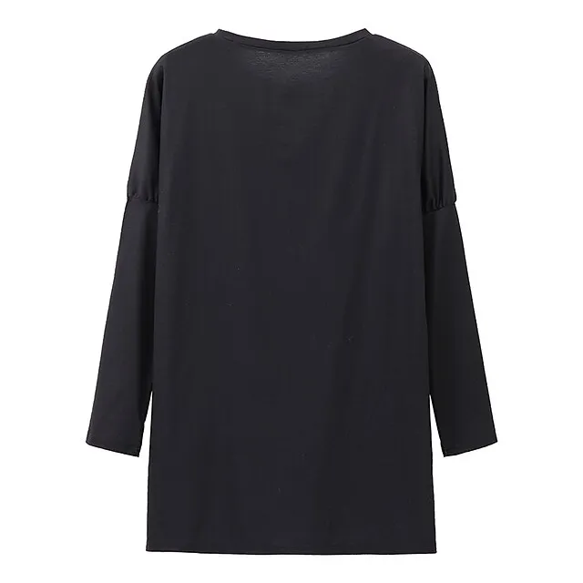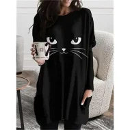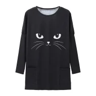 Women’s T shirt Tee Cat Daily Weekend Black White Pink Pocket Print Long Sleeve Funny Round Neck Regular Fit Fall & Winter