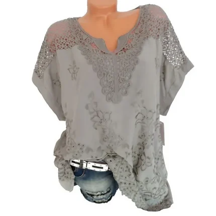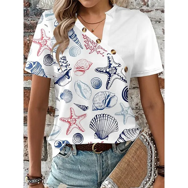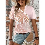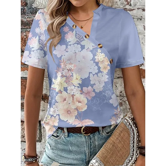 Women’s T shirt Tee Floral Daily Weekend White Pink Blue Button Print Short Sleeve Fashion Diagonal Neck Regular Fit Summer