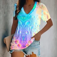 The Women’s Graphic Butterfly Print Tee is your go-to for casual weekends Made with easy-care polyester this short-sleeved V-neck T-shirt features an abstract butterfly pattern and micro-elasticity for comfort and style Perfect for daily wear or weekend encounters