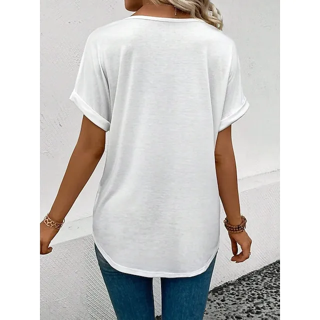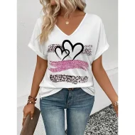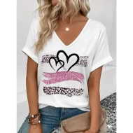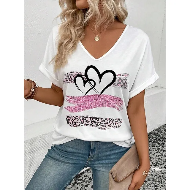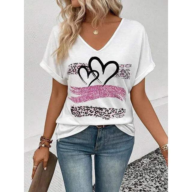 Women’s T shirt Tee Heart Valentine’s Day Casual White Print Short Sleeve Fashion V Neck Regular Fit Summer