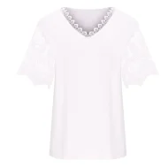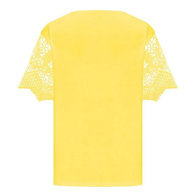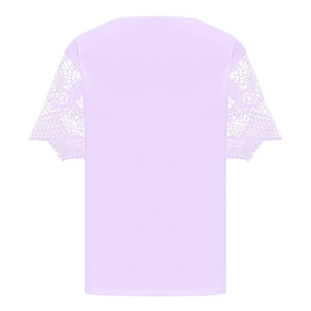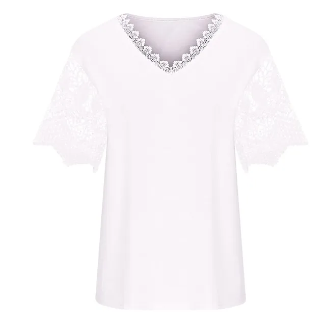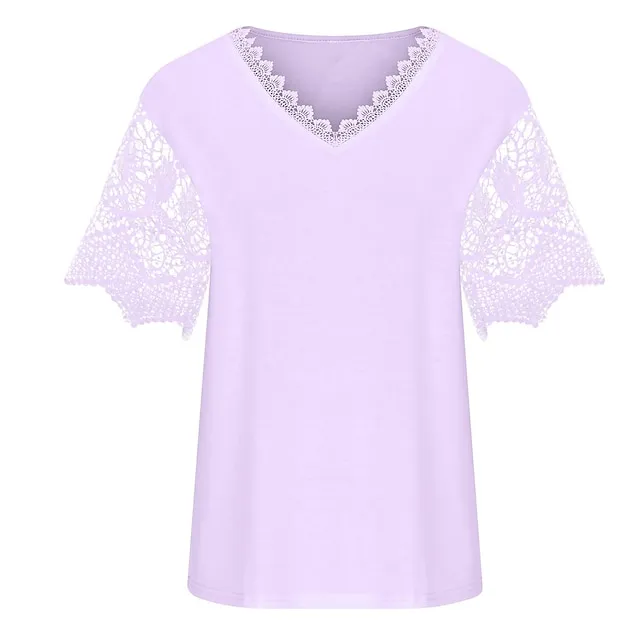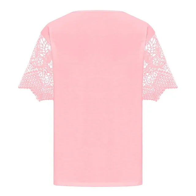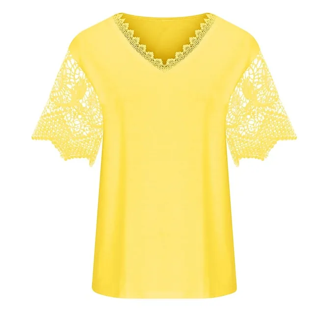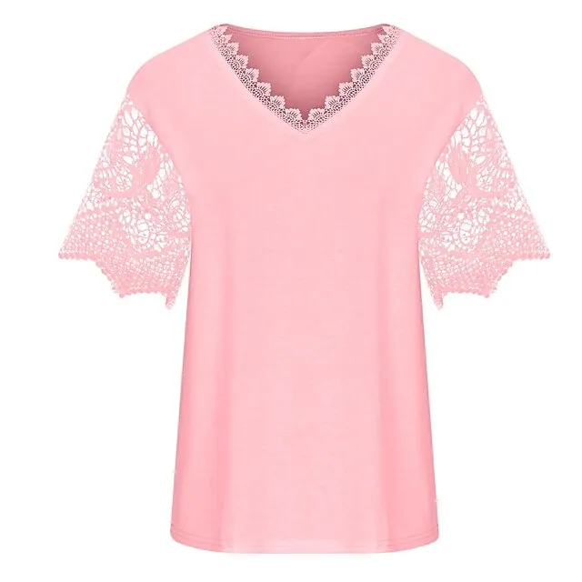 Women’s T shirt Tee Plain Casual Daily Weekend Pink Cut Out Lace Trims Short Sleeve Elegant Fashion Basic V Neck Regular Fit